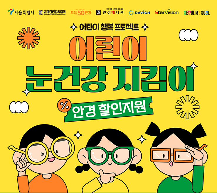 서울시가 새 학기를 맞아 스마트폰 등 디지털 기기와 함께 살아가는 어린이들의 눈 건강을 위해 눈 검진(시력검사)과 최대 20%의 안경 구입 할인을 지원합니다.