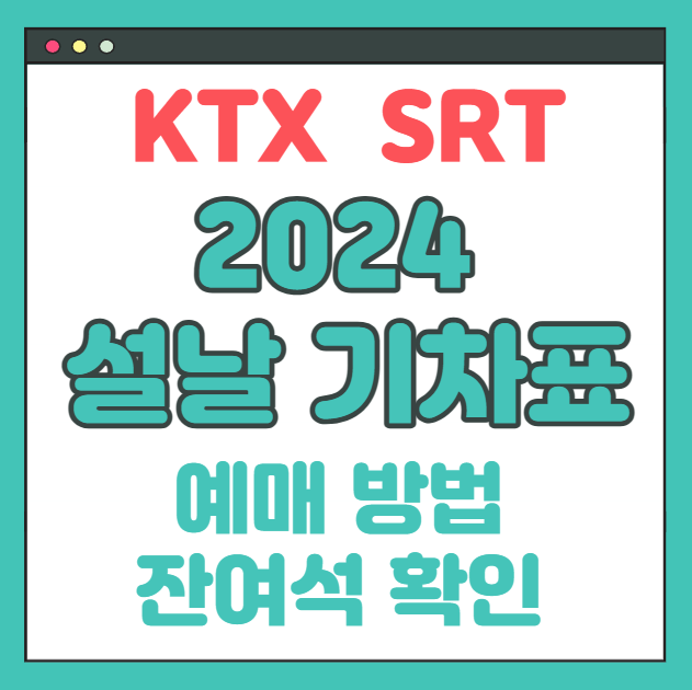 2024년 설날 승차권 예매도 경쟁이 매우 치열할 것으로 예상됩니다. KTX 승차권 예매는 24년 1월 8일(월) ~ 1월 11일(목)까지 진행되고, SRT 승차권은 24년 1월 15일(월) ~ 1월 18일(목) 까지 각각 4일간 이루어 집니다.