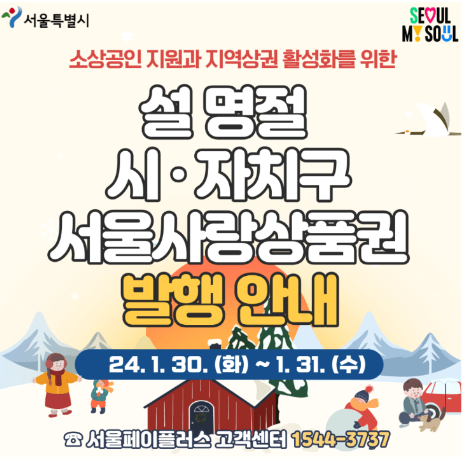 서울사랑상품권 외에 설 맞이 농축산물 할인지원(최대 60%)도 함께 진행하고 있으니, 꼼꼼하게 챙기셔서 설 준비에 도움되시길 바랍니다.